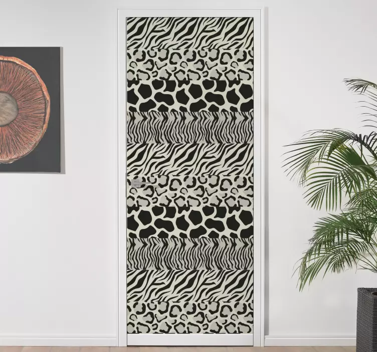 Découvrez notre Sticker porte motif imprimé animal, une pièce de conception graphique captivante qui transformera votre porte en un véritable chef-d'œuvre. Avec son design en noir et blanc, mettant en avant l'empreinte d'animal et des motifs inspirés du léopard et du zèbre, cet autocollant apporte une touche sauvage et moderne à votre décoration intérieure. Laissez-vous séduire par cette œuvre d'art qui allie style et originalité !