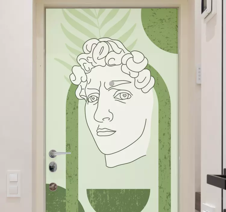Découvrez notre Sticker porte œuvre contemporaine de visage, une pièce unique de design moderne qui transformera votre entrée ! Inspiré par la célèbre statue de David, cet autocollant arbore une sculpture minimaliste en dessin au trait qui s'intègre parfaitement dans n'importe quel décor. Avec ses tons verts apaisants et ses formes abstraites, il apportera une touche d'élégance et de créativité à votre porte.