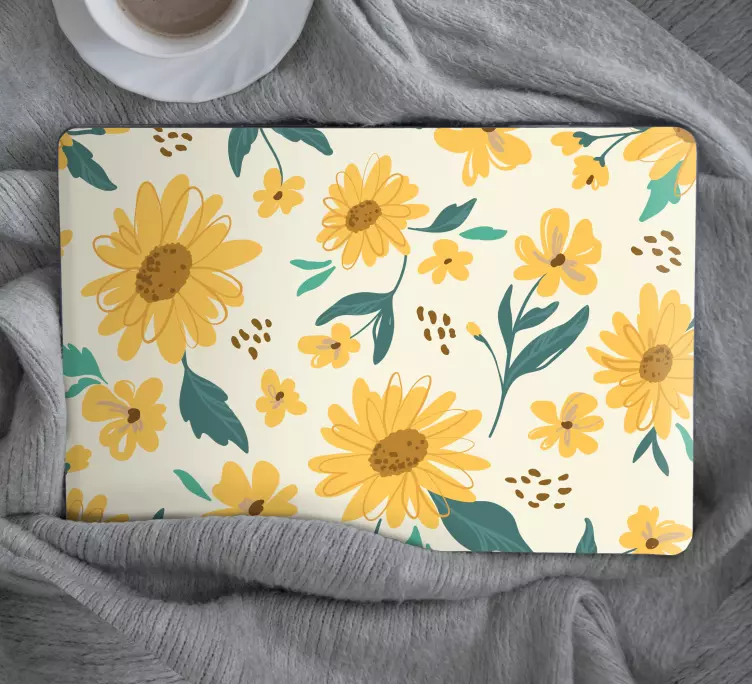 Apportez une touche de fraîcheur et de joie à votre environnement avec notre Sticker pour ordinateur motif floral joyeux. Ce design captivant met en avant des tournesols éclatants et des illustrations florales qui célèbrent la beauté de la nature. Le mélange de jaune et de motifs floraux transforme votre ordinateur portable en une œuvre d'art vivante, parfaite pour égayer vos journées de travail ou vos moments de détente.