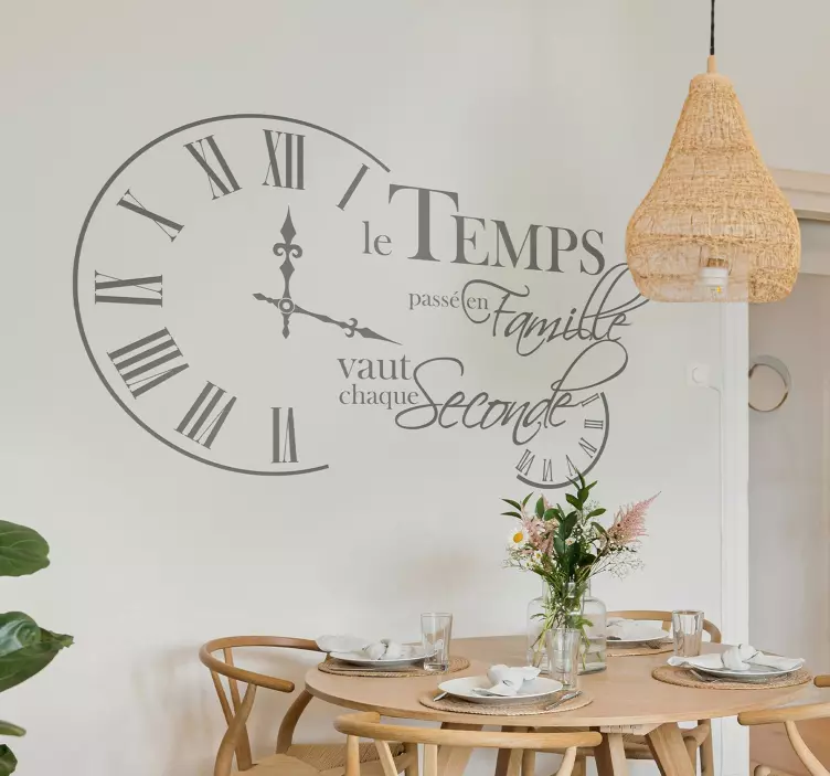 Le Sticker salle à manger citation inspirante avec horloge est plus qu'un simple élément décoratif, c'est une véritable invitation à partager des moments précieux en famille. Sa citation inspirante stimule la convivialité et crée une ambiance positive. En l'appliquant dans votre salle à manger, vous apportez une note d'optimisme qui embellit chaque repas. Laissez-vous séduire par cette pièce qui allie fonctionnalité et art !
