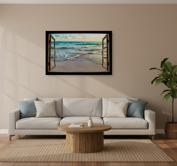 Sticker salon trompe-l'œil fenêtre sur mer