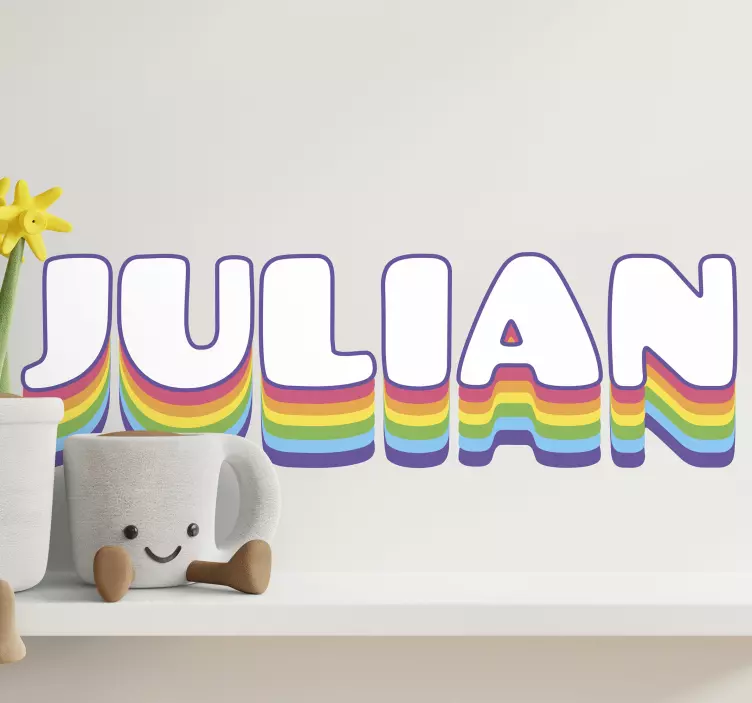 Apportez une touche espiègle et vibrante à votre espace avec le Sticker texte création de nom Éclatante. Ce design unique, orné de motifs en arc-en-ciel, permet de personnaliser votre décor en y ajoutant votre nom de manière ludique et colorée, transformant ainsi n'importe quel mur en une œuvre d'art joyeuse.