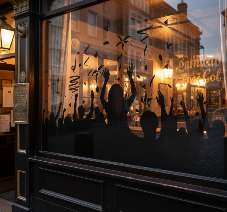 Le Sticker vitrine sticker vitrine foule festive de carnaval est l'élément idéal pour transformer votre espace en un lieu de célébration. Imaginez une vitrine qui respire la joie et l'enthousiasme, attirant ainsi les passants et créant une atmosphère conviviale. Ce sticker est parfait pour communiquer votre esprit festif et donner envie à vos clients de s'arrêter et d'explorer vos offres !