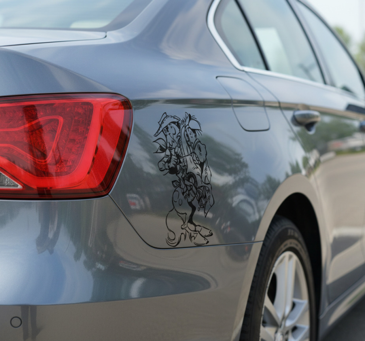 Sticker voiture cheval sauvage et cowboy