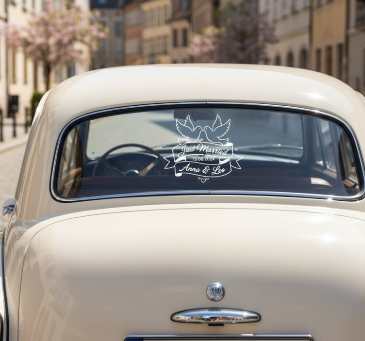 Sticker voiture colombes "just married"