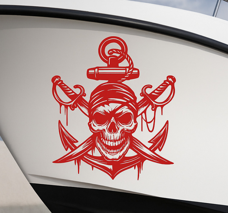 Stickers bateau tête de mort pirate rouge