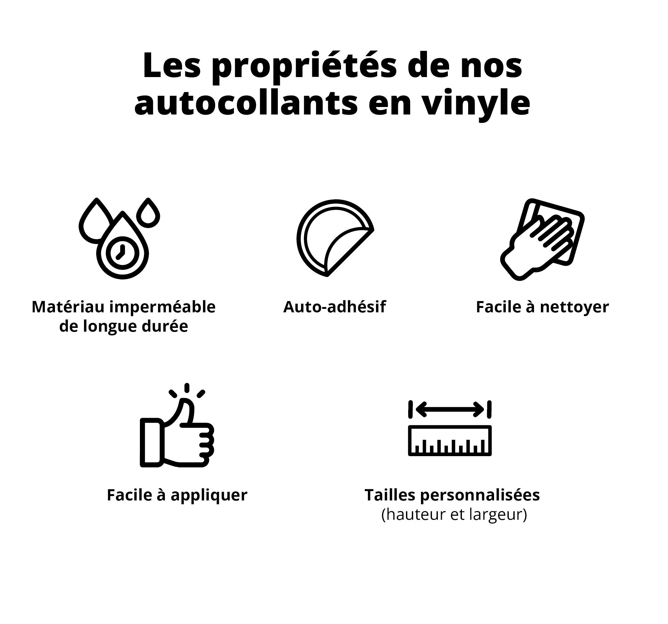 Ne jamais utiliser de produit à vitre pour nettoyer vos surfaces. Celui-ci laisse des particules qui empêchent la bonne adhérence du sticker. Il est conseillé d'utiliser de l'eau ou de l'alcool (de pharmacie) pour procéder au nettoyage de votre surface.