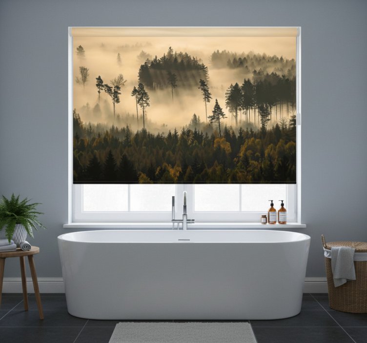 Store enrouleur arbre brume matinale éthérée