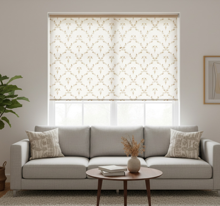 Store enrouleur beige motif floral hexagonal