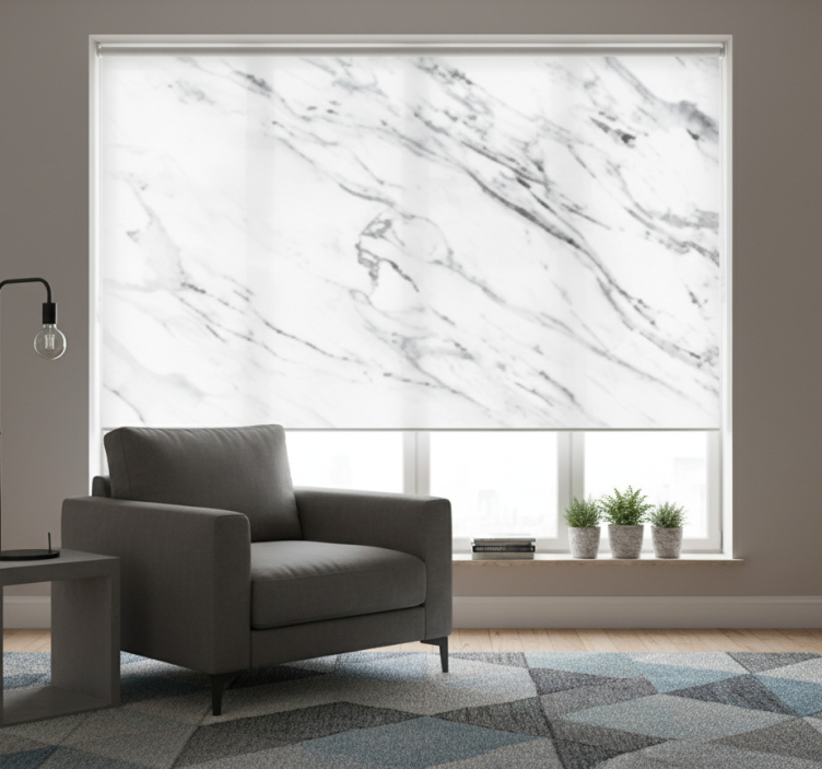 Store enrouleur blanc effet marbre style industriel