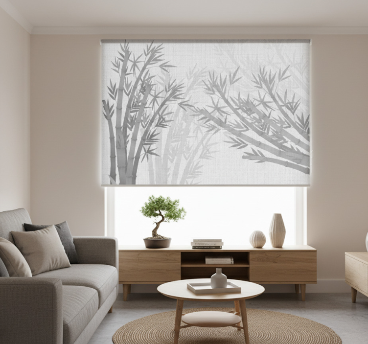 Store enrouleur blanc feuilles de bambou texturées