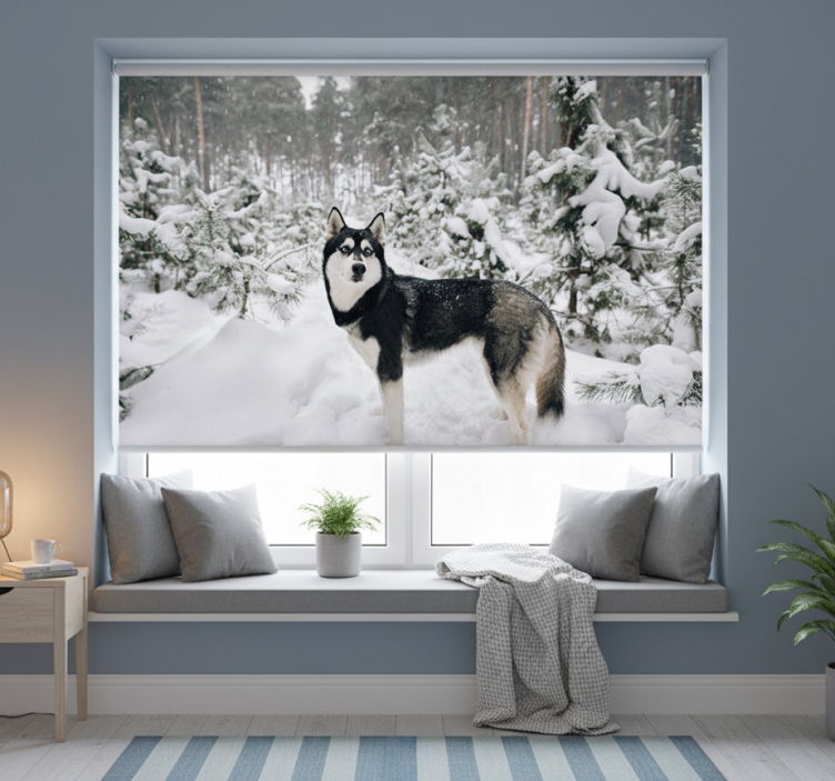 Le Store enrouleur blanc forêt d'hiver et husky est bien plus qu'un simple accessoire ; il transforme votre décoration intérieure en un lieu chaleureux et accueillant. Imaginez-vous dans un salon où la lumière est tamisée par un store délicieusement stylé qui évoque les paysages hivernaux. Ce store apporte une ambiance douce et cosy, rendant chaque moment passé chez vous encore plus agréable !