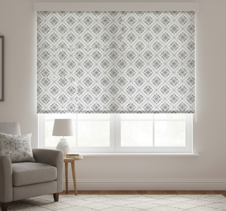 Store enrouleur blanc motif mosaïque grise classique