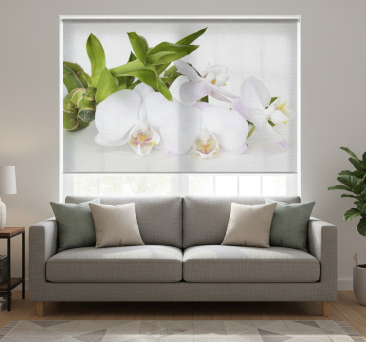 Store enrouleur blanc orchidée verte et blanche