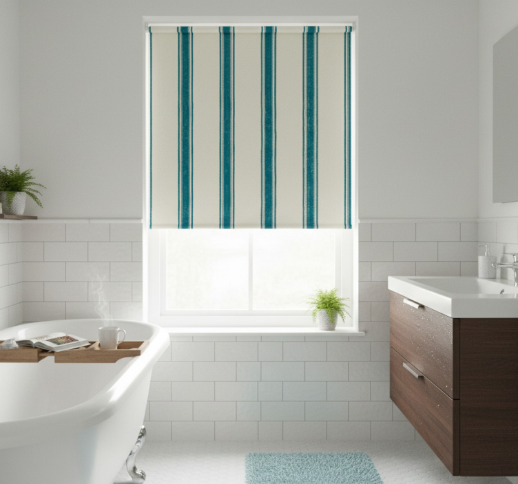 Store enrouleur bleu à lignes verticales bleu clair