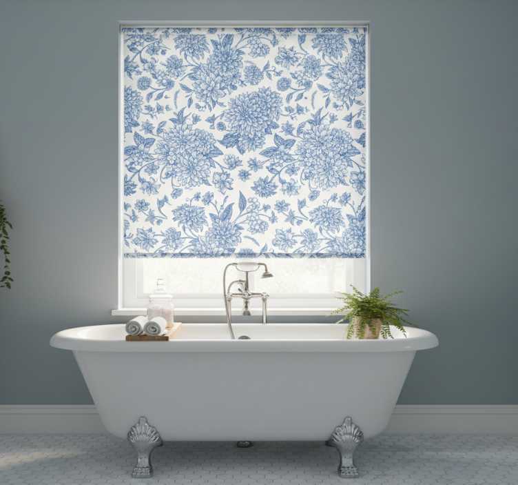Store enrouleur bleu dahlia bleu floral