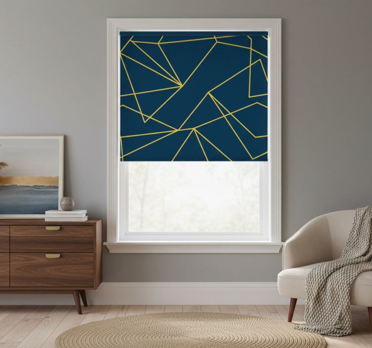 Store enrouleur bleu lignes géométriques dorées