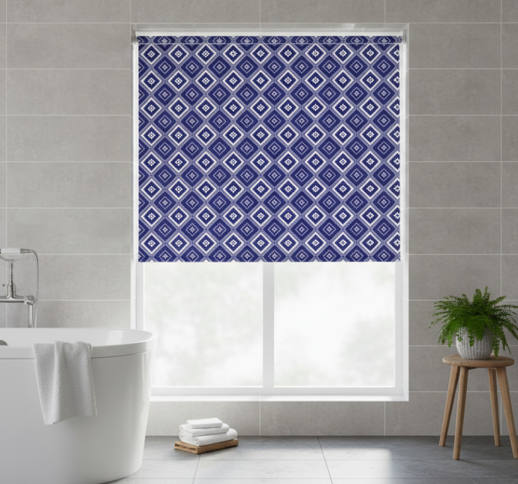 Store enrouleur bleu motif losanges bleus