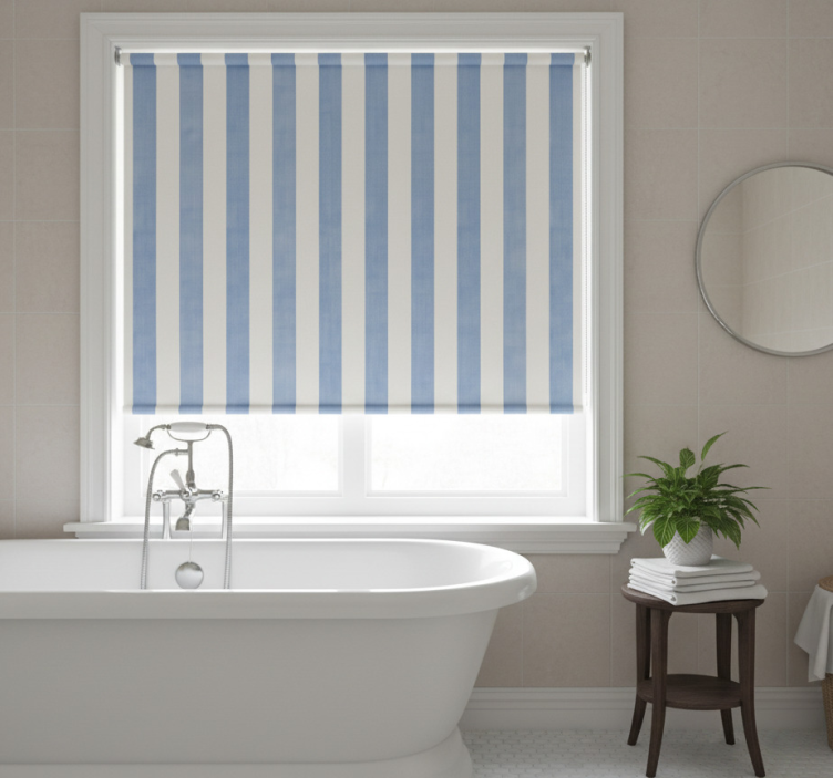 Store enrouleur bleu rayures bleues et blanches