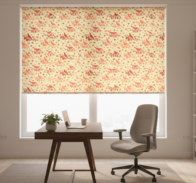 Store enrouleur bureau arbres orientaux avec oiseaux