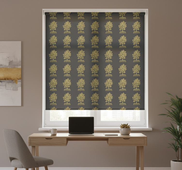 Store enrouleur bureau contour d'arbres dorés