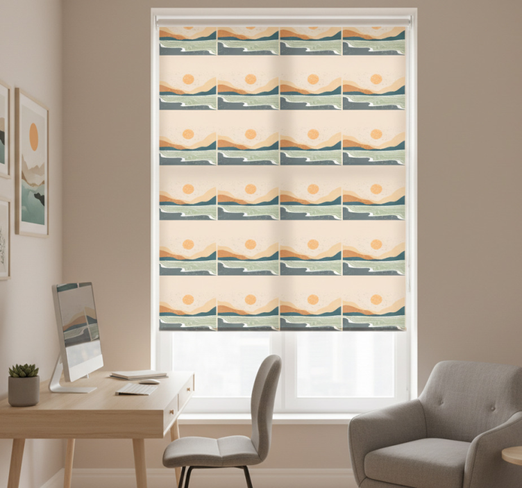 Référence: E6216Le Store enrouleur bureau montagnes au coucher de soleil est un véritable chef-d'œuvre de design qui transforme votre espace de travail. Avec son motif captivant représentant des montagnes baignées par la lumière dorée d'un coucher de soleil, ce store apporte une touche chaleureuse et inspirante à votre bureau. Ce décor enchanteur crée une atmosphère apaisante, favorisant la concentration et la créativité tout en embellissant votre intérieur.