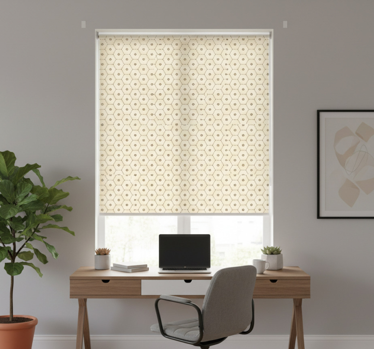 Référence: E6226Découvrez notre store enrouleur bureau motif hexagonal abstrait, une pièce unique qui allie esthétique et fonctionnalité. Son design audacieux, avec des motifs hexagonaux captivants et une palette de couleurs moderne, apporte une touche de sophistication à votre espace de travail. Ce store ne se contente pas d'embellir votre bureau, il crée également une atmosphère inspirante, idéale pour stimuler votre créativité et votre productivité.
