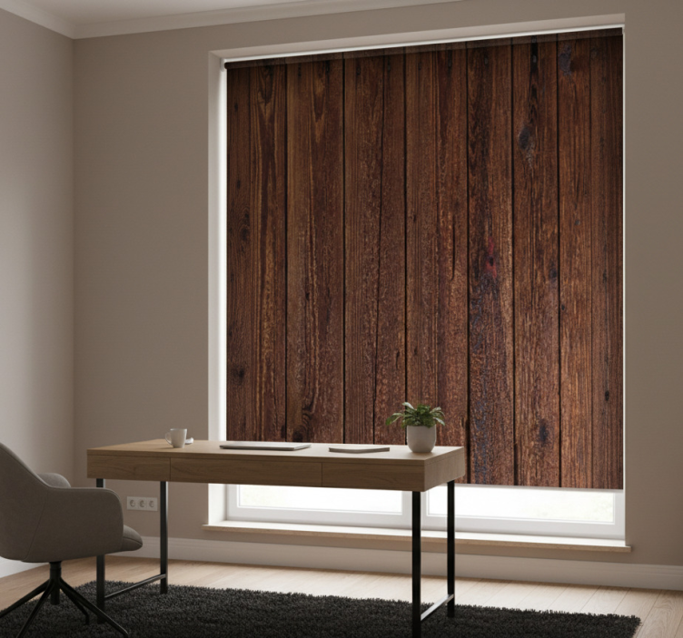 Store enrouleur bureau planches en bois rustiques marron