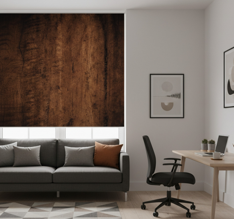 Store enrouleur bureau texture bois foncé