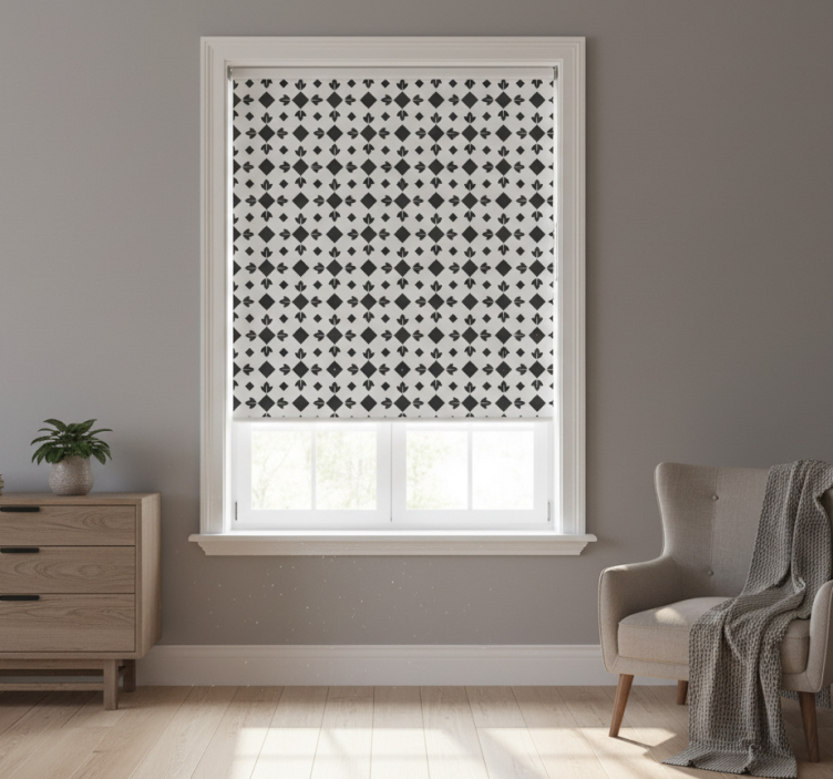 Store enrouleur chambre carreaux noirs et blancs