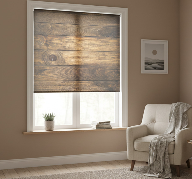 Store enrouleur chambre planches en bois marron