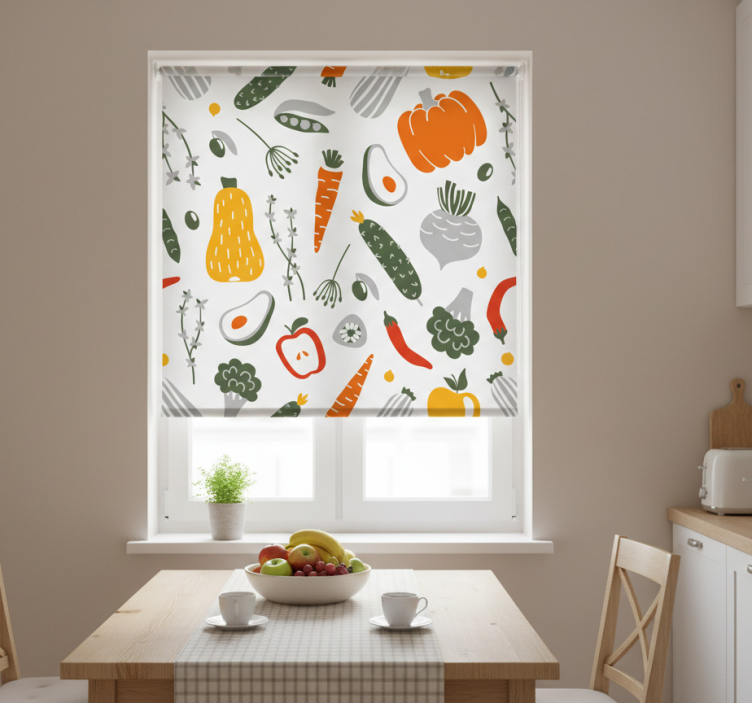 Référence: E6472Ajoutez une touche de fraîcheur à votre cuisine avec notre store enrouleur cuisine collection fruits et légumes. Son design coloré et joyeux évoque les vergers ensoleillés et les jardins luxuriants, tout en apportant une atmosphère conviviale à votre espace. Les motifs de fruits et légumes s'entremêlent harmonieusement, créant une ambiance dynamique qui stimule l'appétit et éveille les sens !