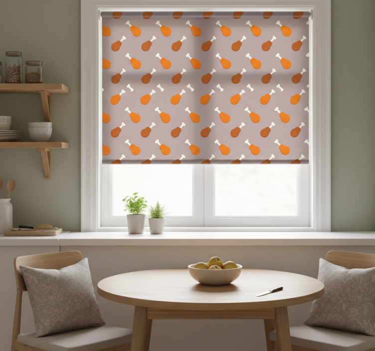 Référence: E6434Apportez une touche d'élégance à votre cuisine avec notre store enrouleur cuisine cuisse de poulet. Son design captivant, inspiré de la nature, évoque des motifs de cuisses de poulet juteuses, apportant une atmosphère chaleureuse et conviviale. Ce store s'intègre harmonieusement dans votre espace tout en vous offrant une solution fonctionnelle et esthétique pour votre décoration intérieure.