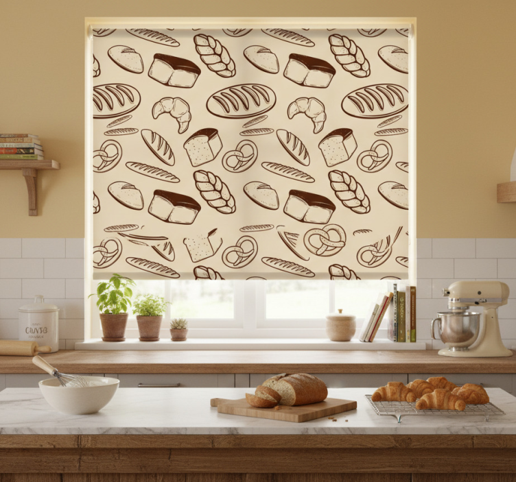 Le Store enrouleur cuisine store enrouleur cuisine motif éléments de boulangerie est bien plus qu'un simple accessoire ; c'est une véritable pièce maîtresse pour votre intérieur ! Imaginez-vous dans une cuisine où chaque instant est empreint de l'odeur du pain frais et des douceurs faites maison. Ce store enrouleur ajoute une note d'authenticité et de convivialité, faisant de chaque repas un moment spécial !