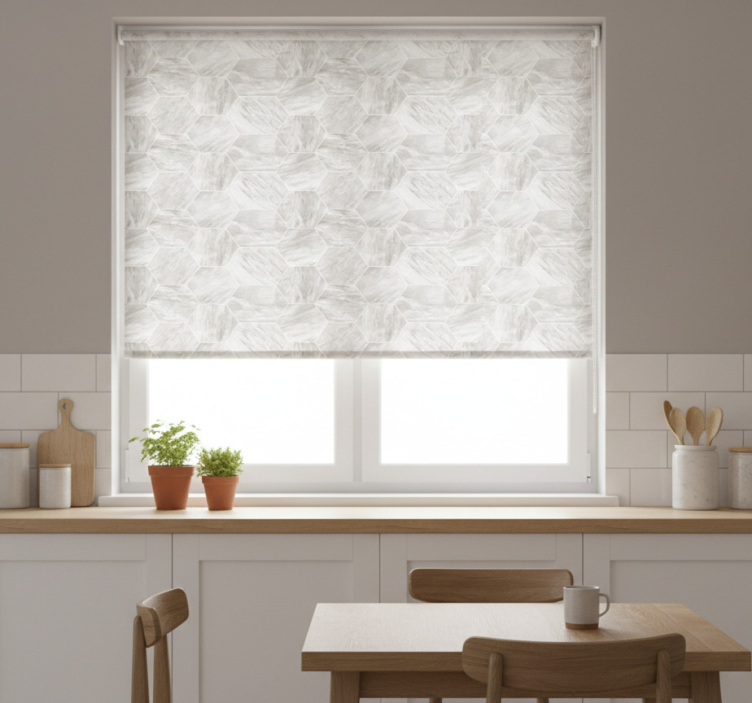 Référence: E6353Découvrez le store enrouleur cuisine motif hexagonal marbre doré, un accessoire au design élégant et moderne qui transformera votre espace culinaire. Avec son motif hexagonal sophistiqué et son effet marbré doré, ce store apporte une touche de luxe tout en s'intégrant harmonieusement à votre décoration. Laissez-vous séduire par cette pièce unique qui allie esthétique et fonctionnalité !