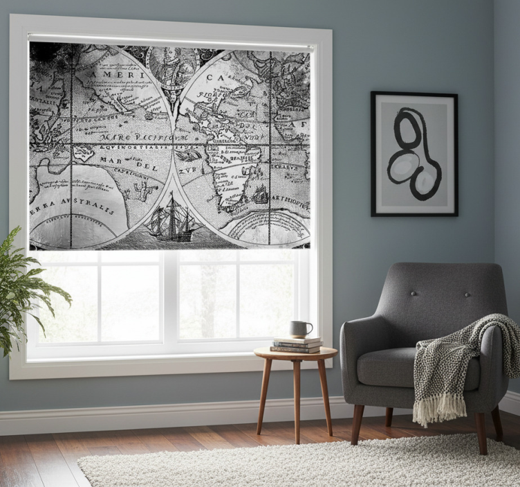 Store enrouleur gris carte du monde noir et blanc