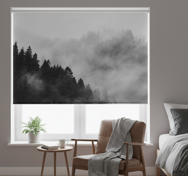 Store enrouleur gris forêt brumeuse noir et blanc