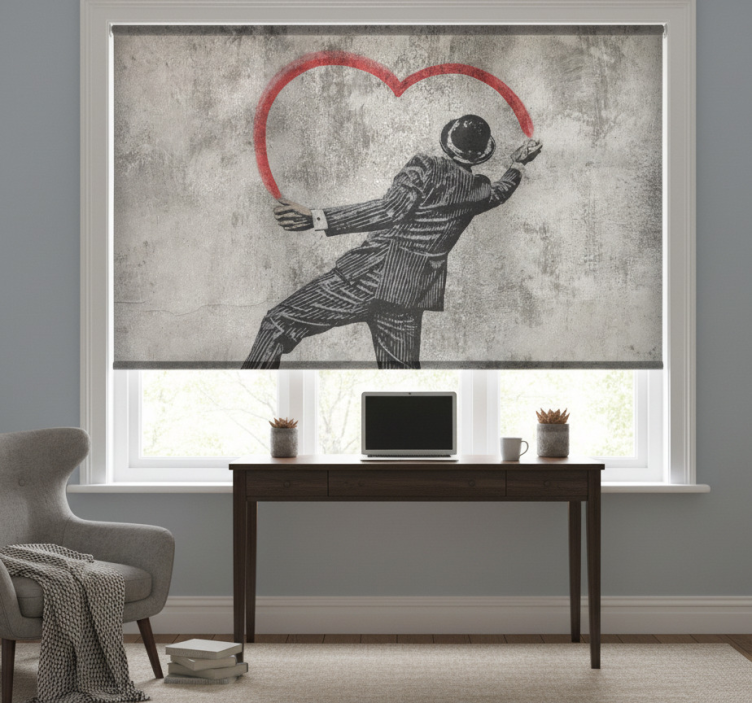 Référence: E10013Ajoutez une touche d'originalité à votre intérieur avec le Store enrouleur gris graffiti cœur banksy. Ce design audacieux et artistique, inspiré par l'univers de Banksy, offre un motif de cœur vibrant qui attire tous les regards. Le mélange de gris et de motifs graffiti transformera votre espace en un lieu à la fois moderne et chaleureux.