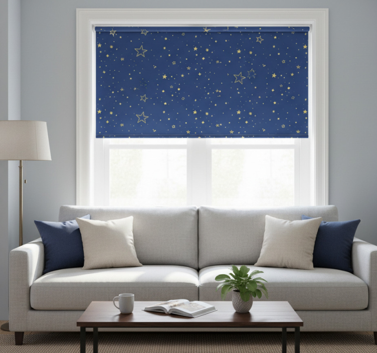 Store enrouleur moderne étoiles dorées sur fond bleu