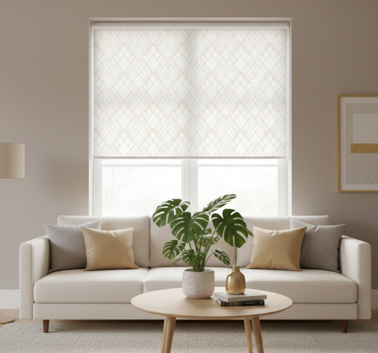 Store enrouleur moderne lignes irrégulières dorées sur blanc