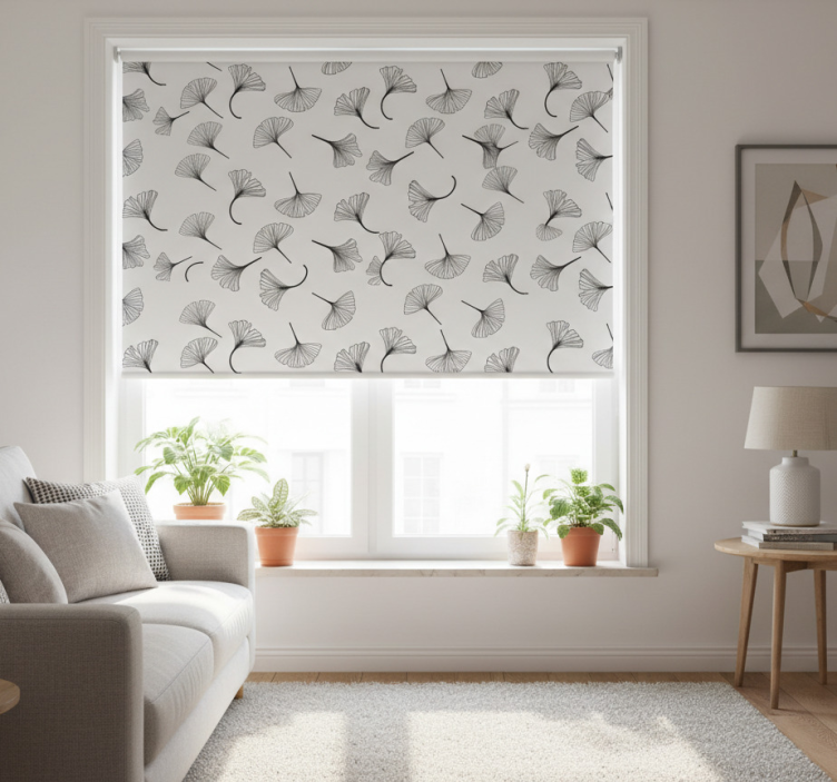 Store enrouleur moderne motif feuilles de ginkgo noir