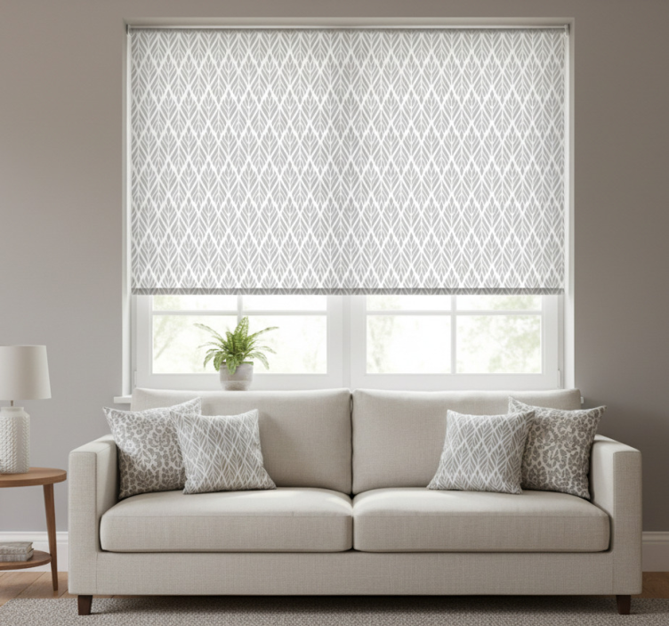 Store enrouleur moderne motif floral ethnique gris