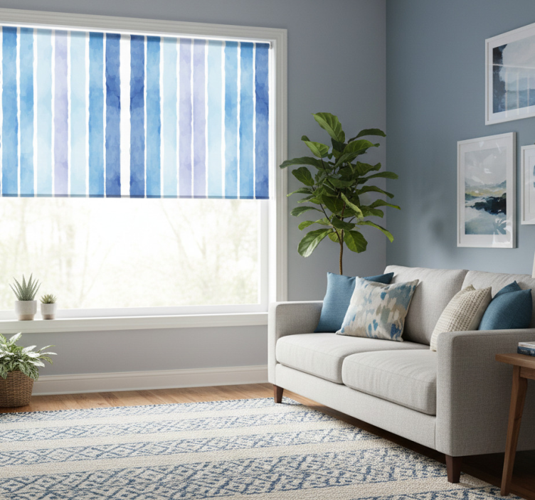 Store enrouleur moderne motif lignes aquarelle bleues