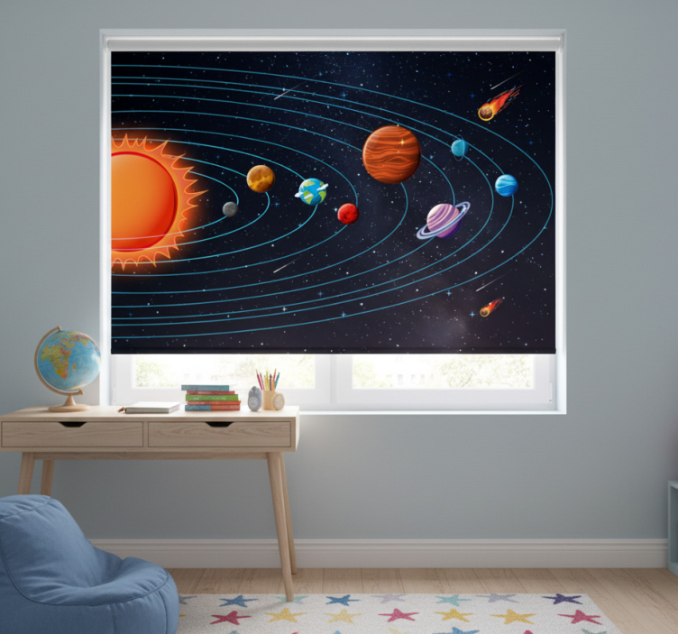 Référence: E8731Transformez la chambre de votre enfant avec notre store enrouleur noir animation spatiale pour enfants ! Ce design captivant, orné de planètes, étoiles et fusées, éveille l'imagination et invite à l'aventure. Parfait pour créer une ambiance ludique et accueillante, il embellit tout espace tout en ajoutant une touche d'originalité.