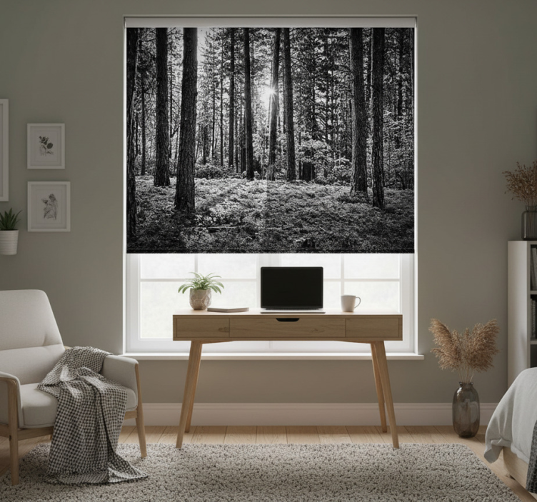Store enrouleur noir forêt monochrome
