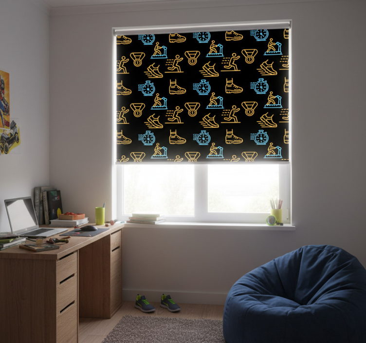 Store enrouleur pour chambre ado icônes néon sur noir