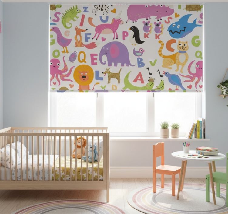 Store enrouleur pour chambre enfant animaux de l'alphabet