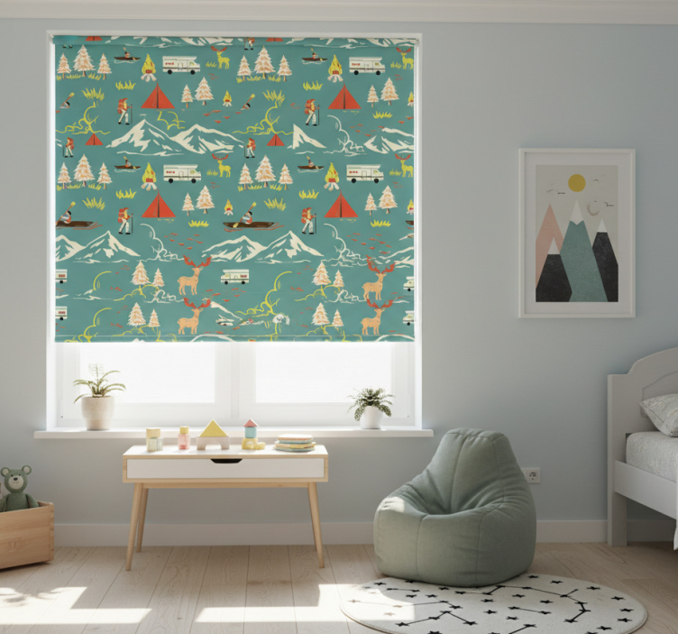 Store enrouleur pour chambre enfant avec camping et arbres