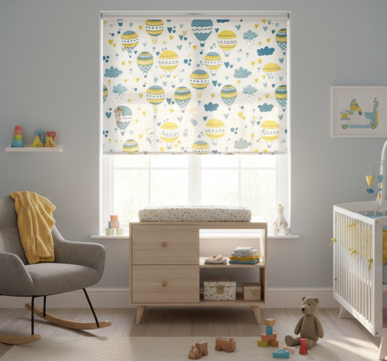 Référence: E6795Transformez la chambre de votre enfant avec notre Store enrouleur pour chambre enfant ballons bleus et jaunes. Ce magnifique design évoque un ciel enjoué rempli de ballons colorés, apportant une touche de légèreté et de gaieté à l'espace. Les nuances de bleu et de jaune créent une atmosphère apaisante, idéale pour encourager le rêve et l'imagination. Avec ce store, chaque jour devient une aventure colorée !