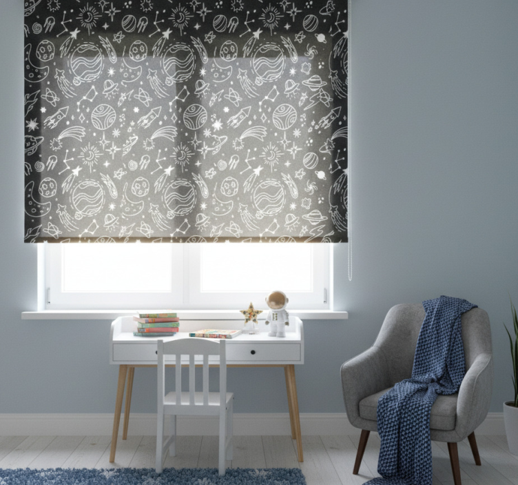 Store enrouleur pour chambre enfant cosmos noir et blanc
